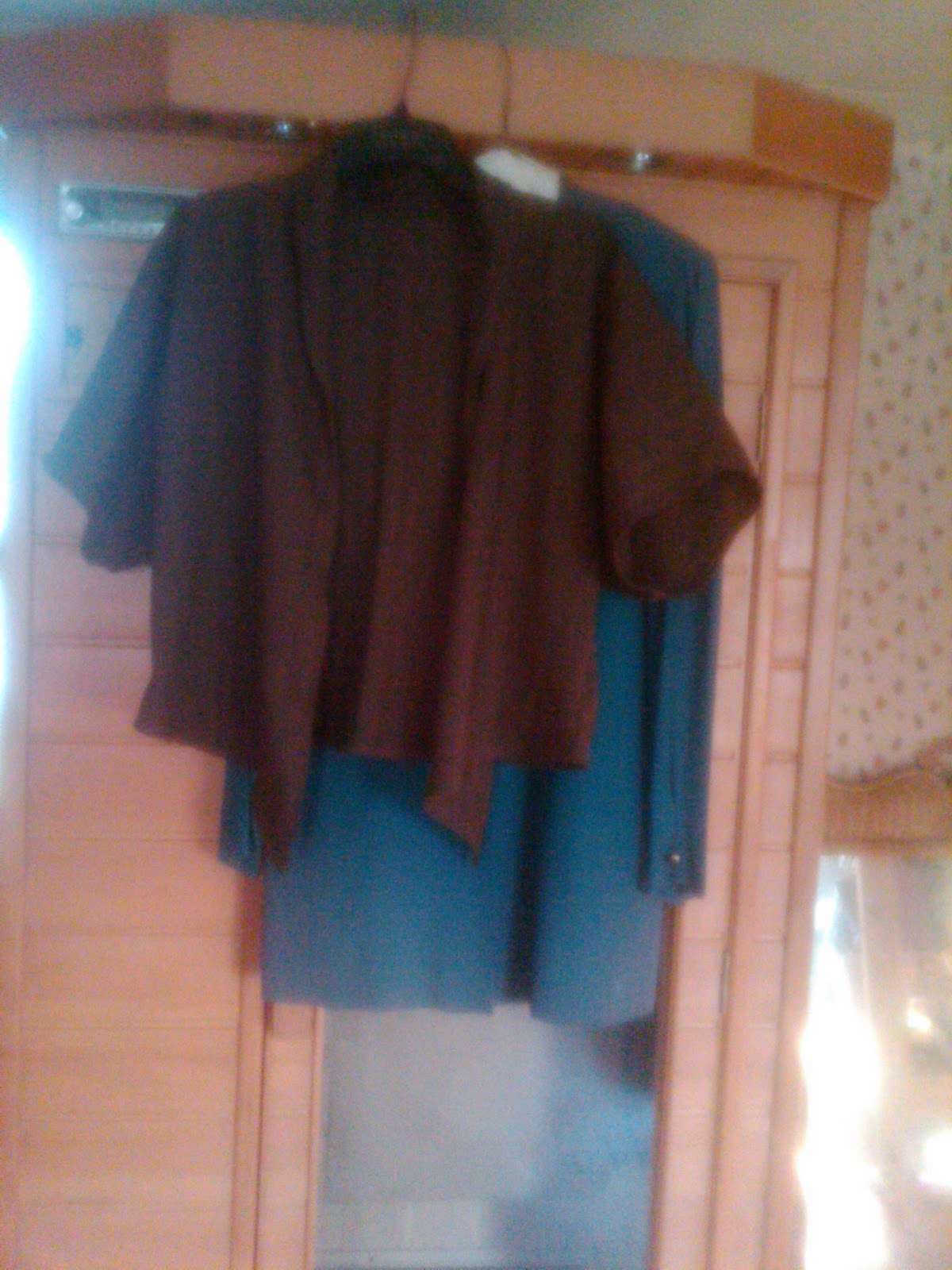 Then, I decided that I'd like a dress wrap for the holiday season. So, out came the maroon satin, and the same old gray jersey for this:
